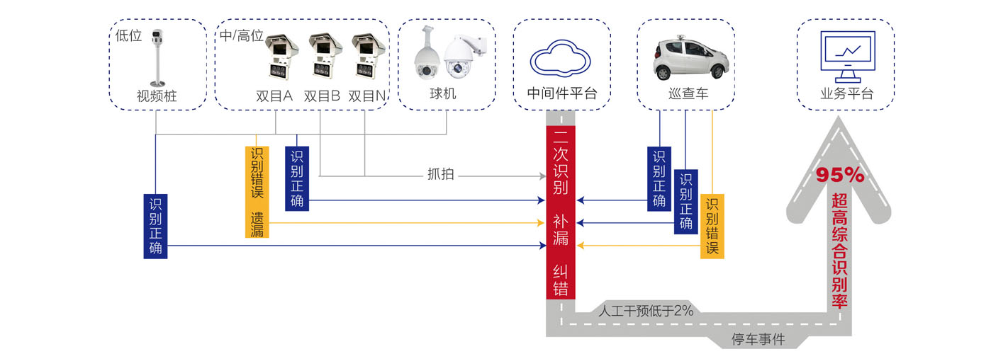 向下統(tǒng)一管理多種類多數(shù)量的視頻識別設(shè)備,向上使用簡單方便的接口協(xié)議對業(yè)務(wù)平臺推送準(zhǔn)確可靠的停車數(shù)據(jù),更可拓展二次識別功能,對視頻識別設(shè)備返回的數(shù)據(jù)進(jìn)行再次識別,95%超級綜合識別率遙遙領(lǐng)先。