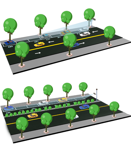 ? 高位正照:安裝于停車泊位道路同側,最多可覆蓋8個泊位