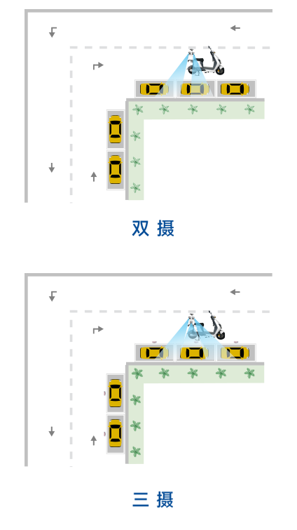 標(biāo)配雙攝,可用于右側(cè)泊位巡檢,適用平行、垂停、斜停等泊位類型。